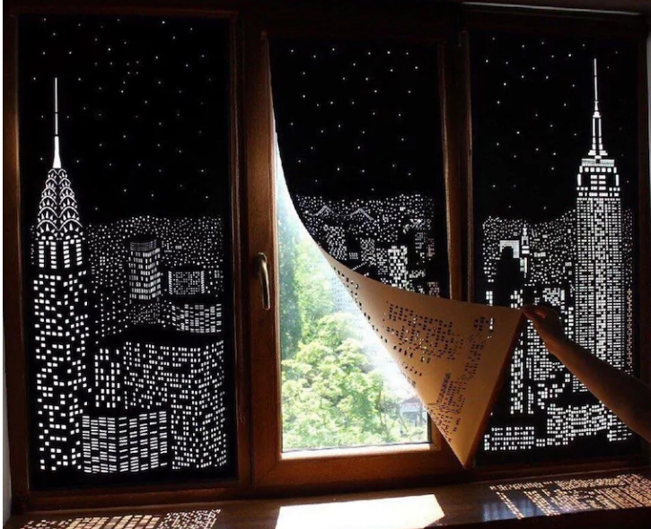 Благодаря креативному дизайну, такие шторы перекрывают яркое солнечное освещение, но при этом пропускают достаточно света чтобы создать красивый городской пейзаж в доме. Шторы имеют разнообразный дизайн, цвет и рисунок.