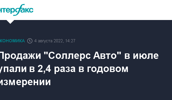 Продажи российского автопроизводителя «Соллерс Авто» в июле 2022 года снизились в годовом выражении в 2,4 раза (на 58,2%) — до 1,955 тыс. шт., следует из данных Ассоциации европейского бизнеса (АЕБ). Рост….