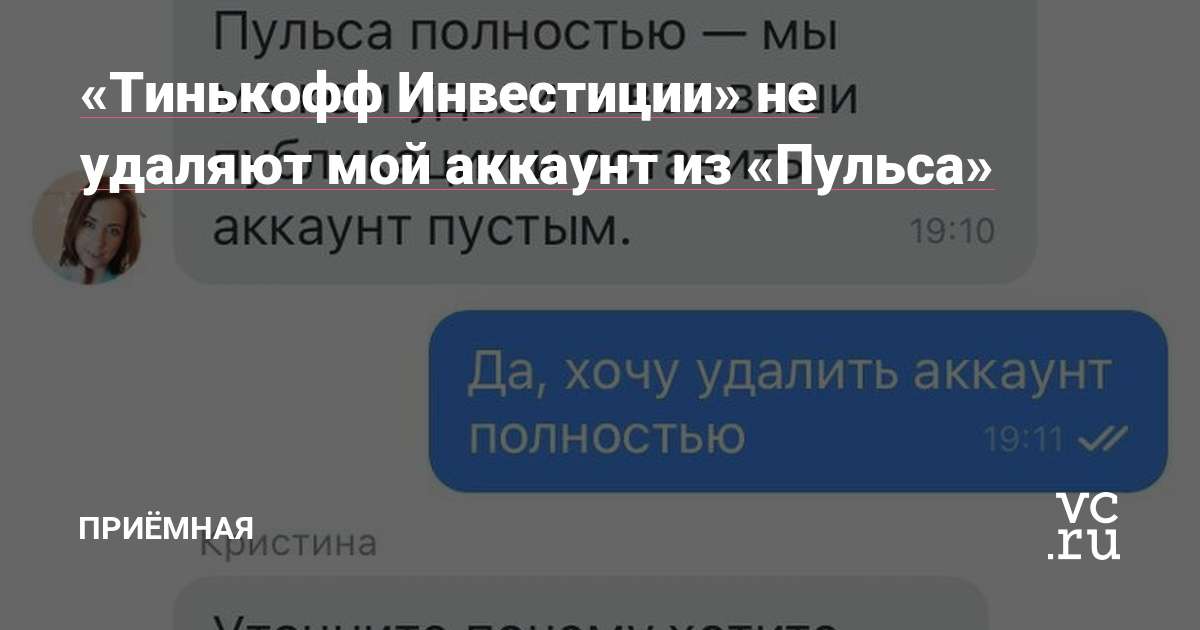 «Тинькофф Инвестиции» не удаляют мой аккаунт из «Пульса»