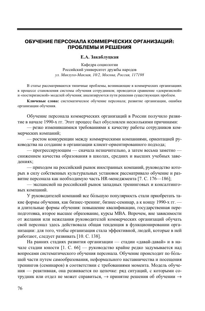 3 Орлова Л.В. Эффективность кадрового обучения предпринимателей малого и среднего бизнеса как практическая проблема // Труд и социальные отношения. Ежемесячный журнал. — М.: — 2010. — №3. — С. 70.